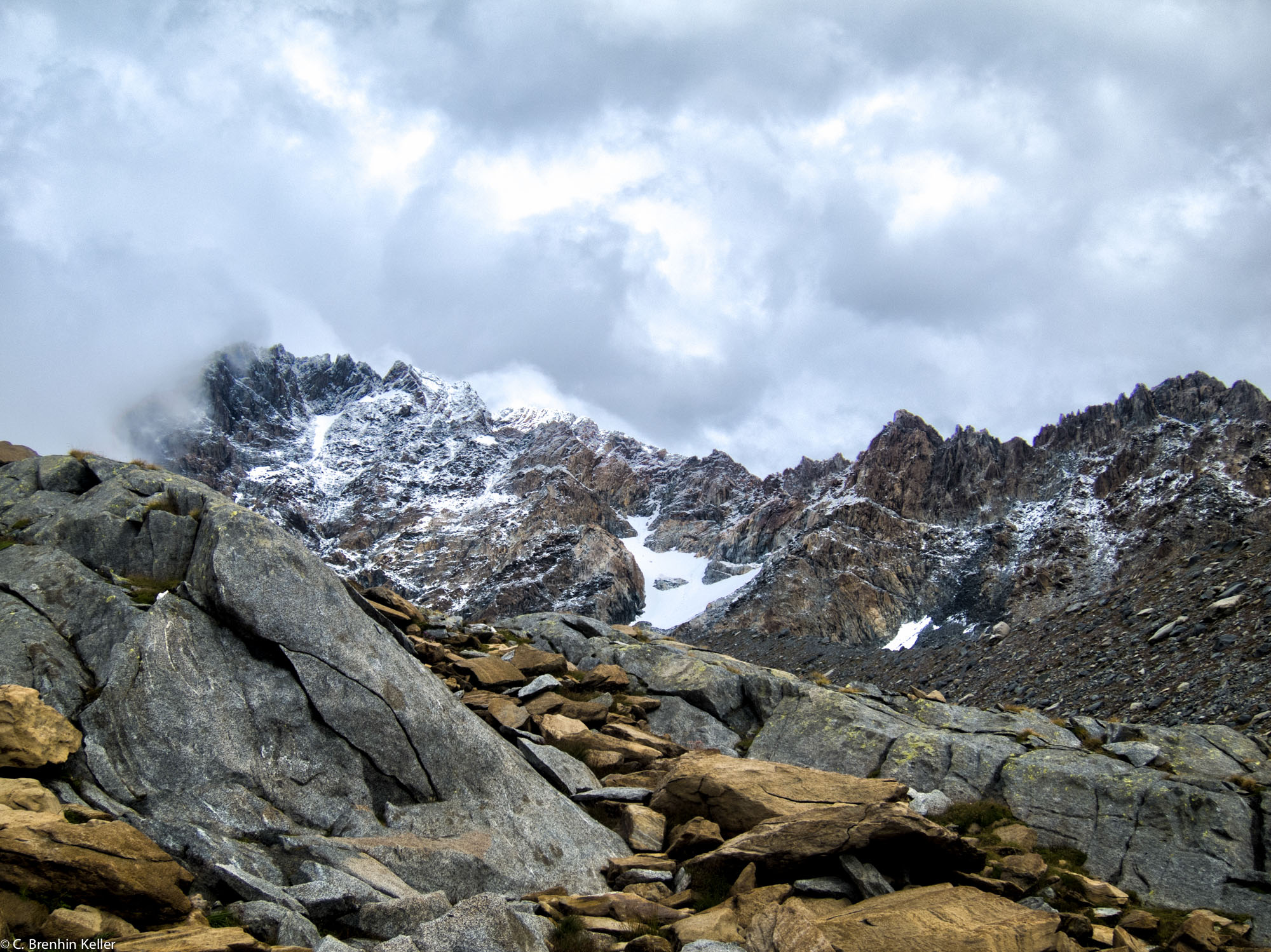 Bergell tonalite scattered with ultramafic talus fallen from Monte Disgrazia