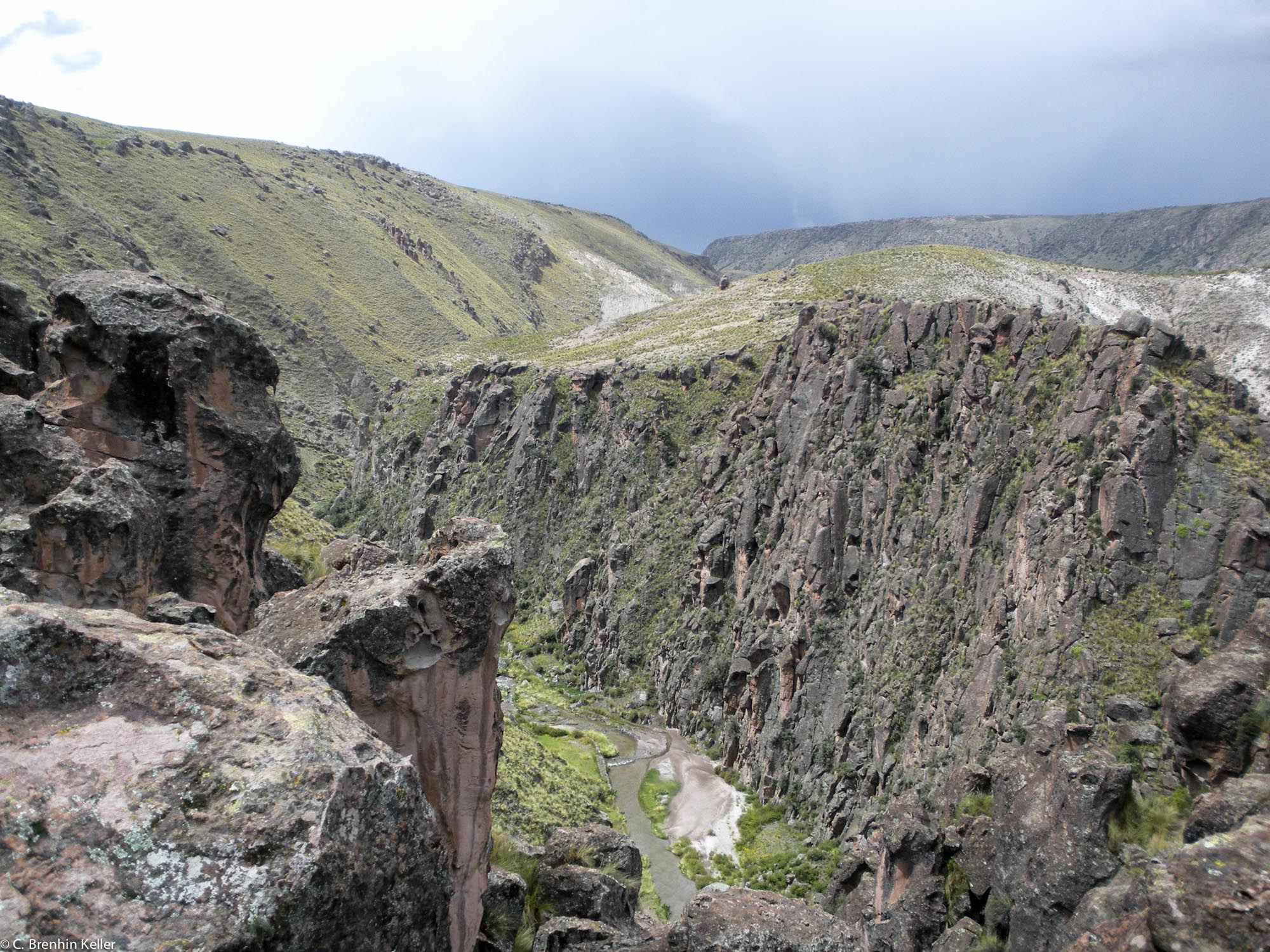 The massive columnar-jointed flow of the main Frailes ignimbrite is dissected by the Pillkumayu river near Potosi, Bolivia