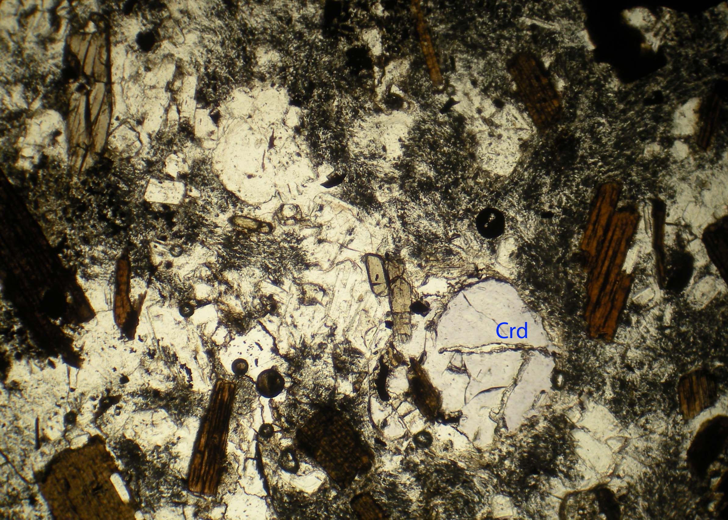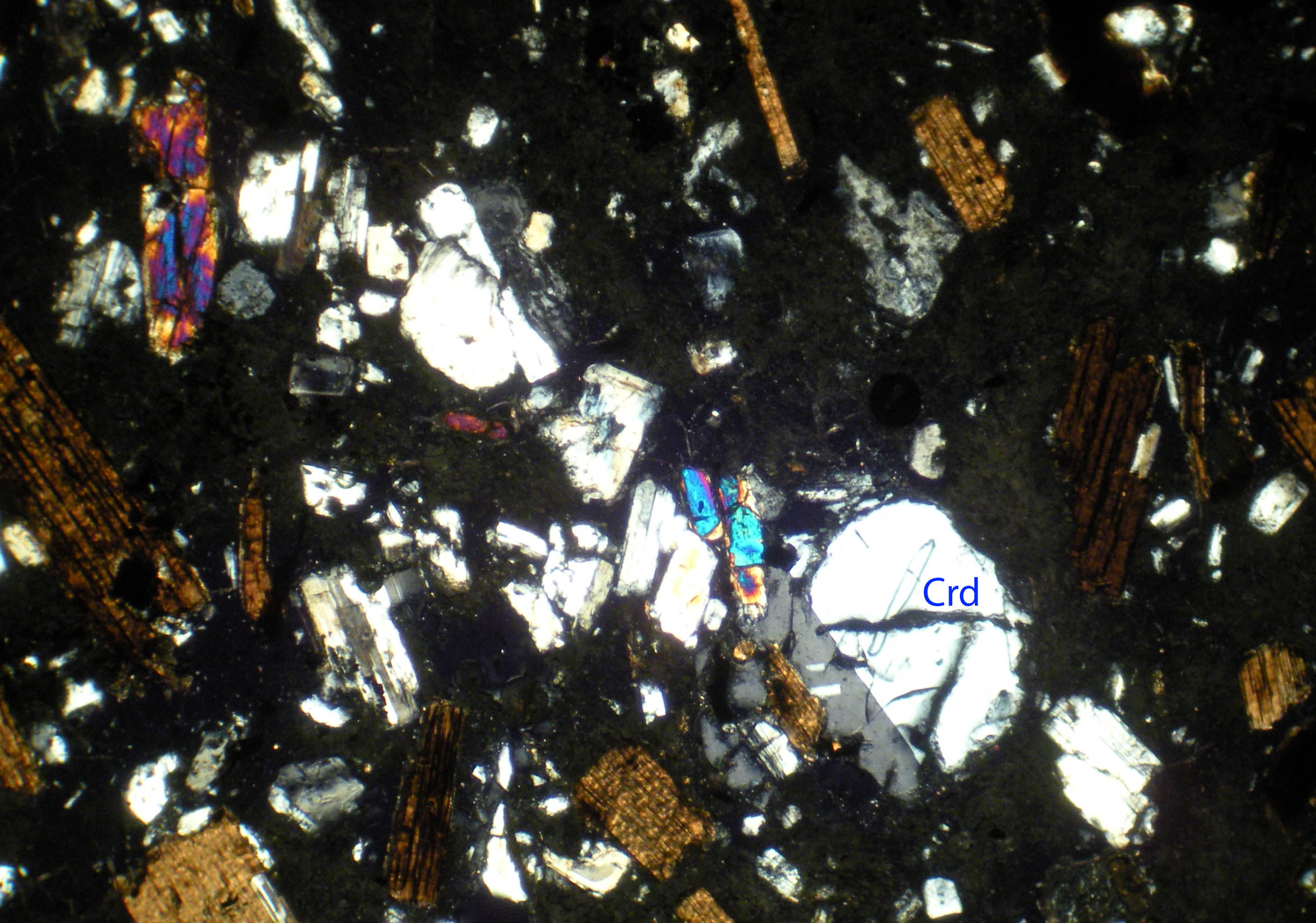 Magmatic cordierite in a corundum-normative sample from the Condor Nasa ignimbrite flow.