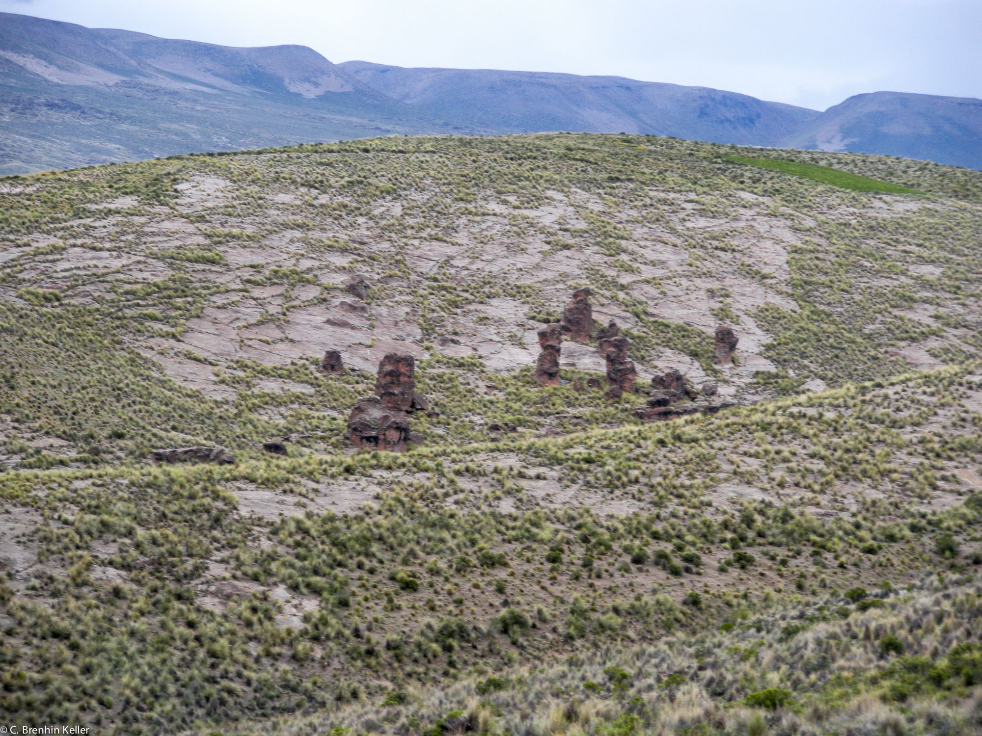 Silicified elutriation columns resist erosion relative to the surrounding tuff of the main Frailes ignimbrite